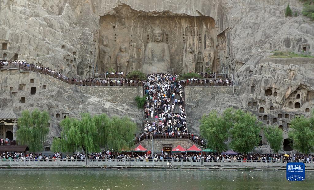4月30日,游客在河南洛陽(yáng)龍門(mén)石窟景區游覽。