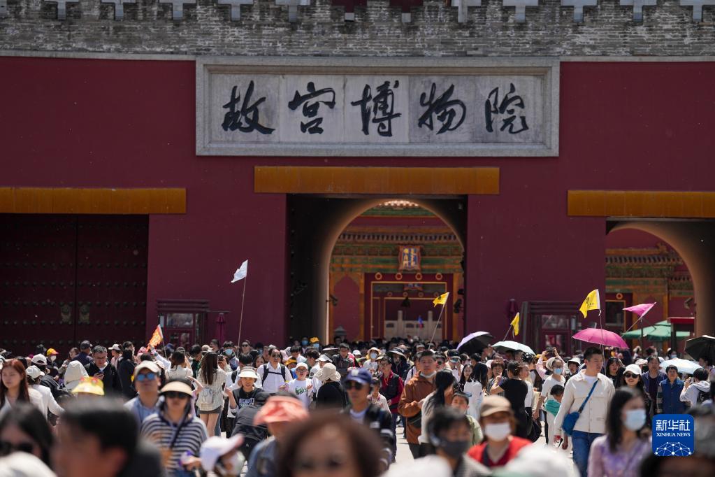 4月29日,游客在參觀(guān)結束后走出故宮博物院。
