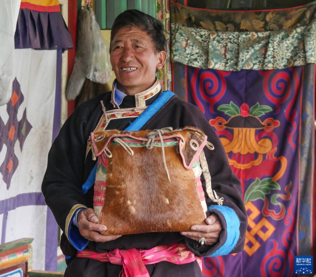 61歲的索朗群培回憶,他小時(shí)候見(jiàn)到村里的大人騎在有馬包的馬上,特別威風(fēng),讓他對制作馬包產(chǎn)生了濃厚興趣。21歲時(shí),他師從當地老藝人多布杰學(xué)習馬包制作技藝。如今,他已是林芝市第一批市級非物質(zhì)文化遺產(chǎn)項目中馬包手工制作技藝的傳承人。