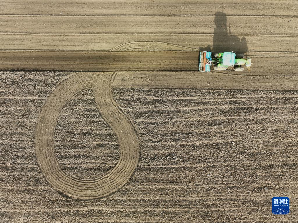 5月1日,河北省承德市豐寧滿(mǎn)族自治縣大灘鎮扎拉營(yíng)村的農民在耕地(無(wú)人機照片)。