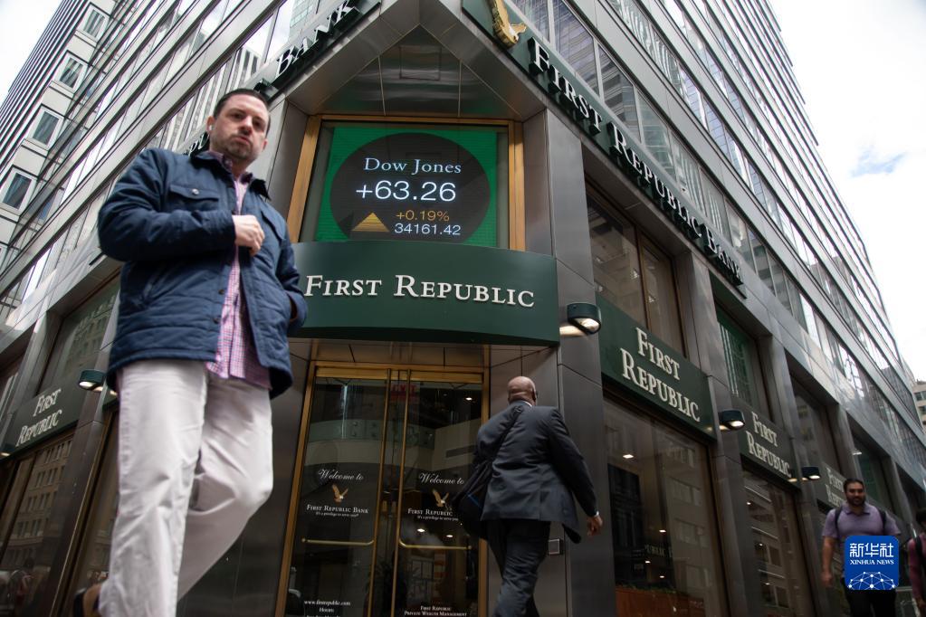 5月1日,在美國紐約,行人從一家第一共和銀行前走過(guò)。