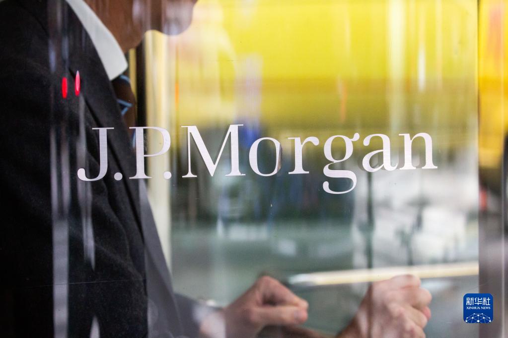 這是5月1日在美國紐約拍攝的摩根大通標志。
