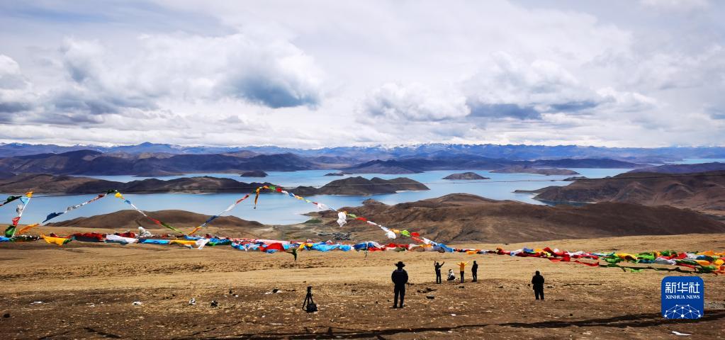 游客在羊卓雍錯魯日拉欣賞美景(5月1日攝,手機照片)。