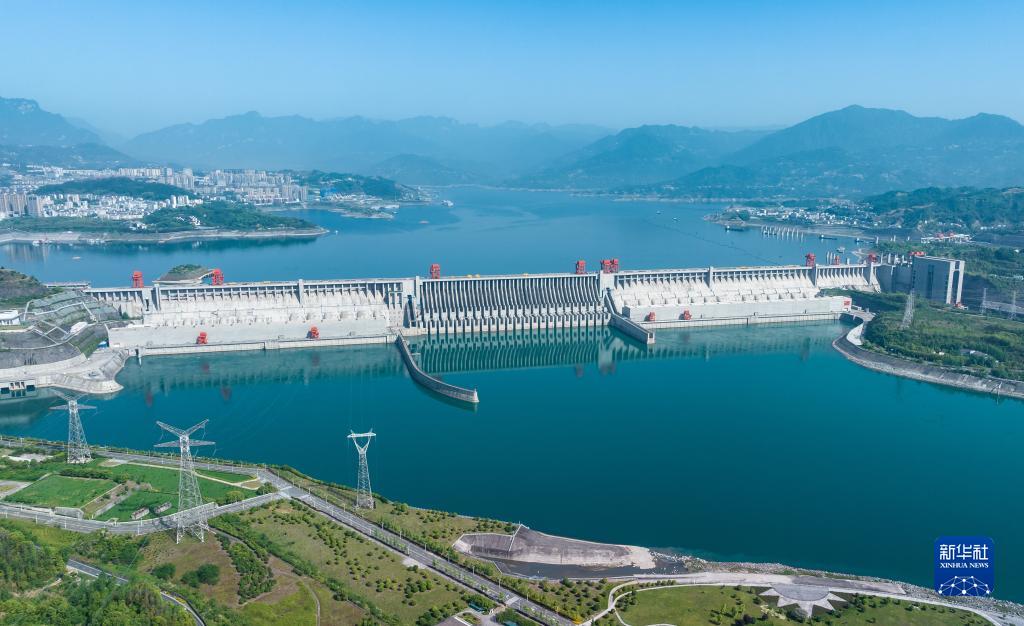 4月30日拍攝的長(cháng)江三峽樞紐工程(無(wú)人機照片)。