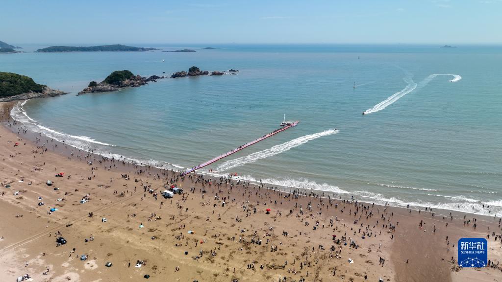 5月2日,游客在浙江省舟山市朱家尖大青山里沙景區游玩(無(wú)人機照片)。