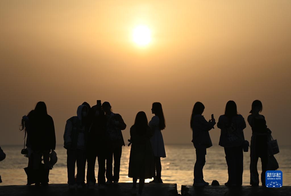5月3日,游客在天津市濱海新區東疆親海公園游玩。