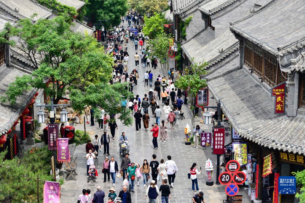 5月3日,游客在山東濰坊青州古城景區游玩。
