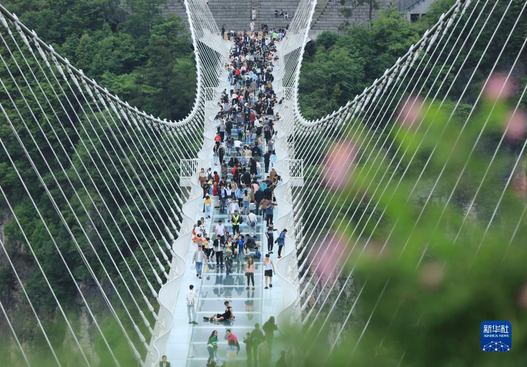 5月2日,游人在湖南張家界大峽谷風(fēng)景區體驗高空玻璃橋。