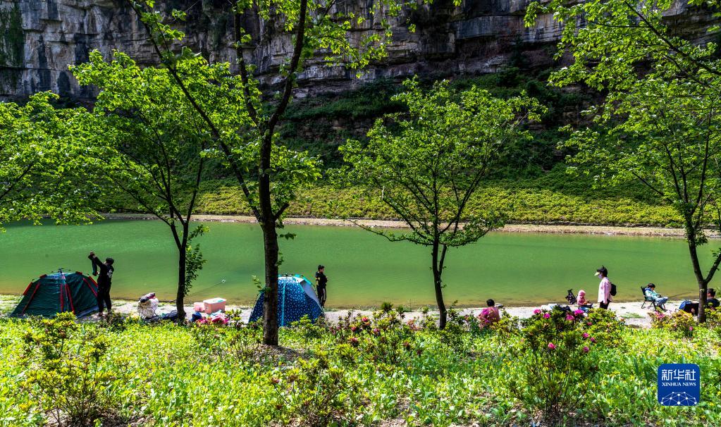 5月2日,游客在重慶市南川區萬(wàn)卷書(shū)臺露營(yíng)游玩。