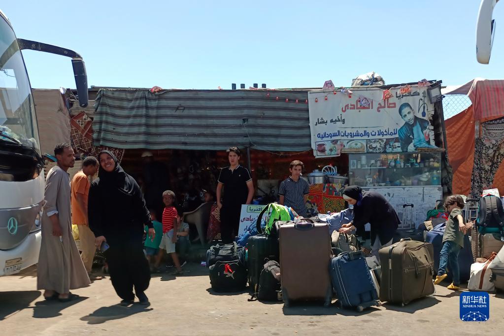 5月2日,逃離蘇丹的難民抵達埃及南部阿斯旺省的一處汽車(chē)站(手機拍攝)。