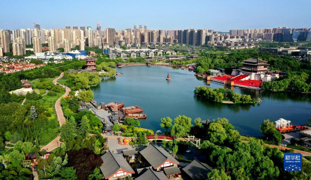 西安大唐芙蓉園(4月25日攝,無(wú)人機照片)。