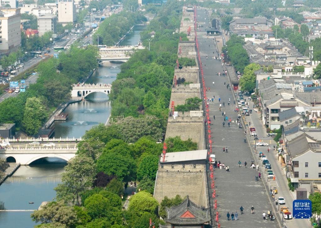西安城墻南段(4月25日攝,無(wú)人機照片)。