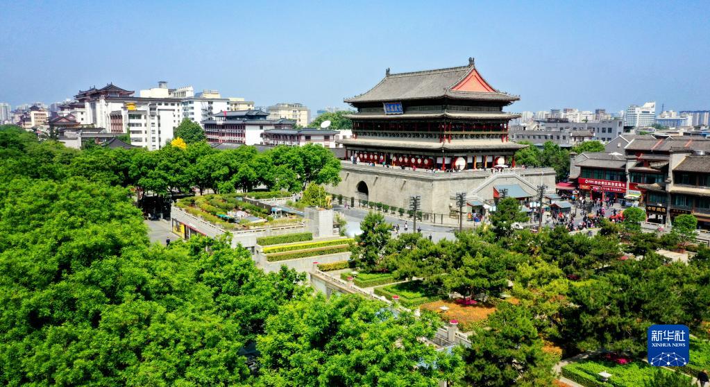 西安鼓樓(4月25日攝,無(wú)人機照片)。