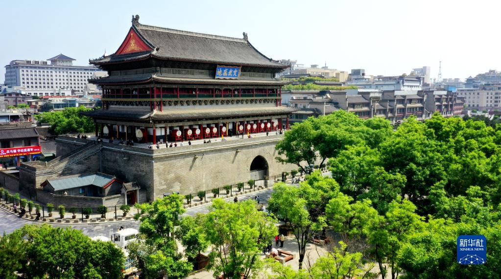 西安鼓樓(4月25日攝,無(wú)人機照片)。