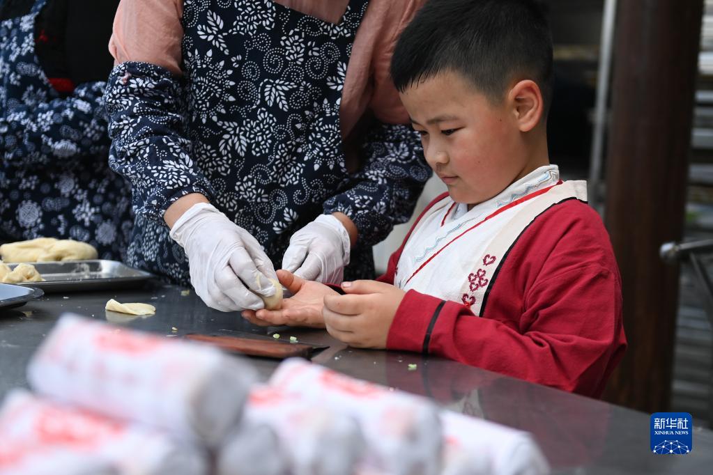 臨近立夏節氣,浙江省杭州市臨平區塘棲鎮丁山河村的村民們做米塑“立夏狗”、腌灰鴨蛋、搭土灶蒸“野米飯”等,用江南水鄉傳統的民俗迎接初夏。