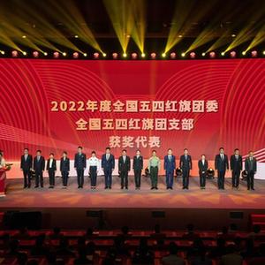 5月4日,在北京中央團校舉行的第27屆“中國青年五四獎?wù)隆濒?022年度“兩紅兩優(yōu)”頒獎活動(dòng)上,第27屆“中國青年五四獎?wù)隆鲍@獎集體代表合影留念。