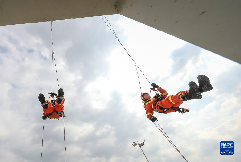 5月4日,貴州省銅仁市玉屏侗族自治縣消防救援大隊青年消防員在進(jìn)行訓練。