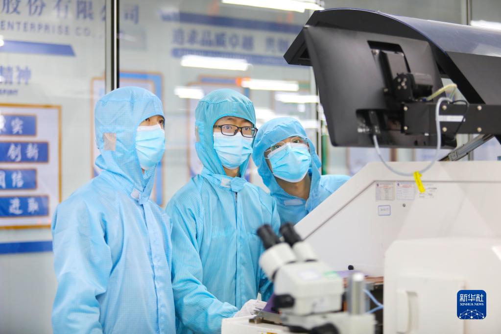 5月4日,青年技術(shù)員在重慶平偉實(shí)業(yè)股份有限公司無(wú)塵生產(chǎn)車(chē)間調試芯片生產(chǎn)設備。