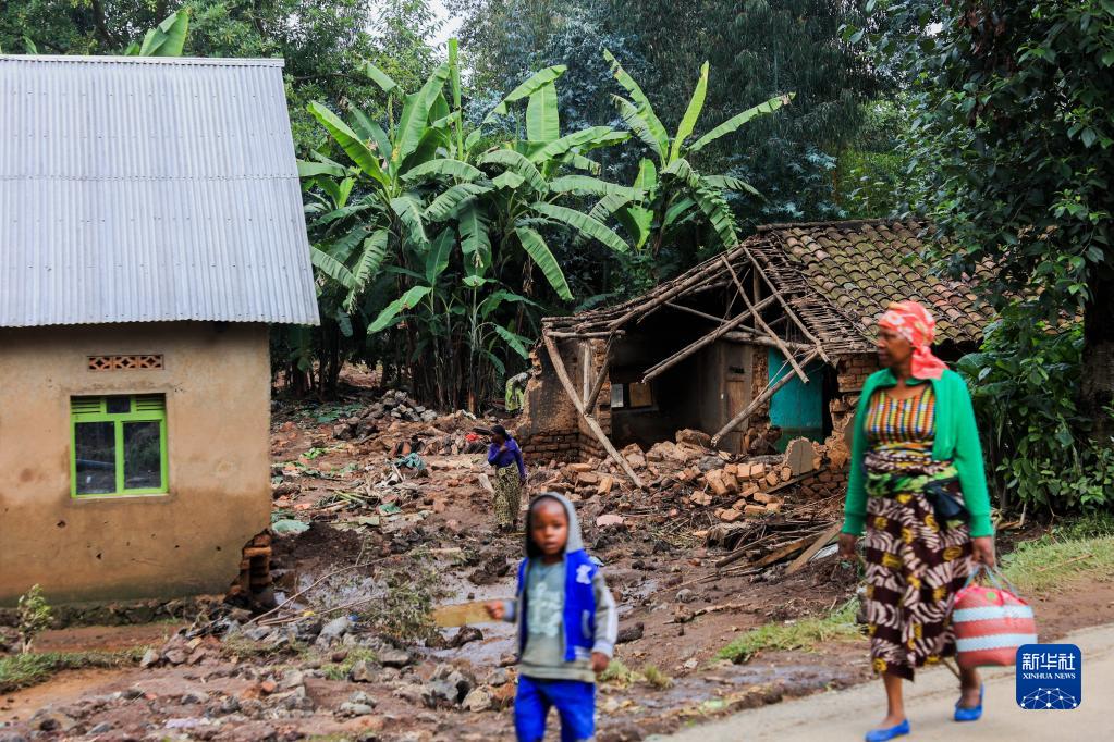 5月4日,在盧旺達西方省,人們經(jīng)過(guò)在強降雨和洪水中受損的房屋。
