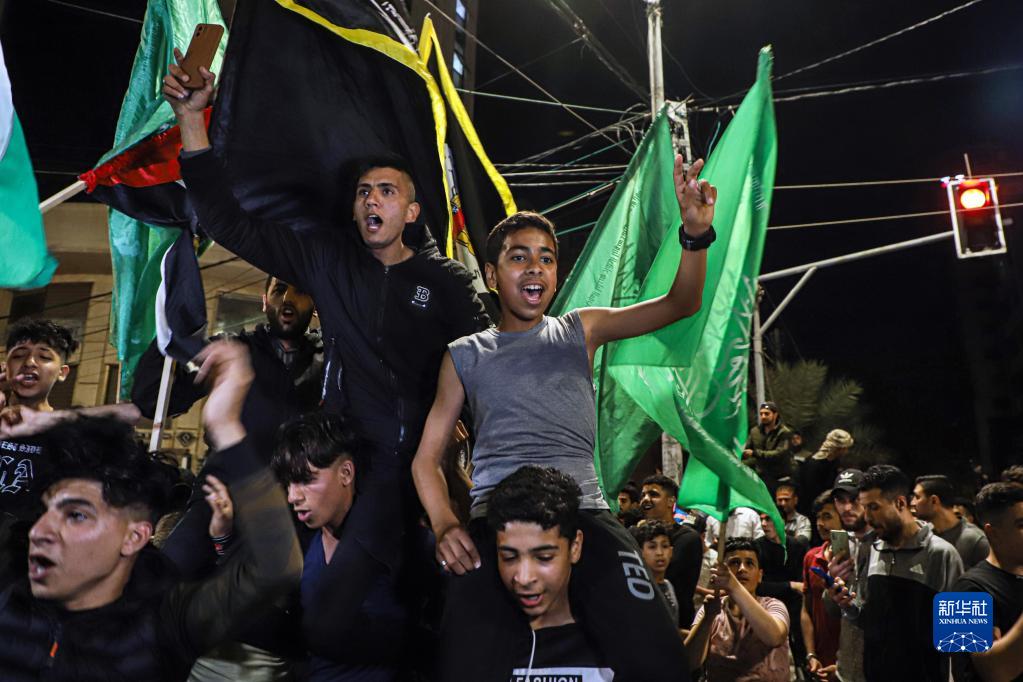 5月13日,巴勒斯坦人在加沙城街頭慶祝?;饏f(xié)議達成。