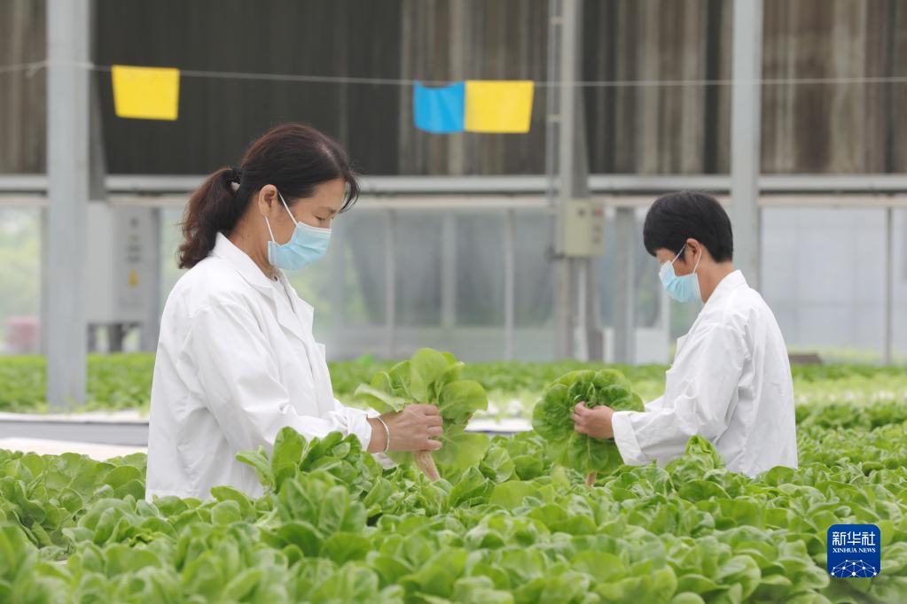 5月20日,河北省保定市徐水區一家現代農業(yè)示范園區的工作人員在智能溫室內采收水培蔬菜。