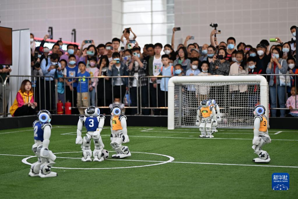 5月20日,觀(guān)眾觀(guān)看機器人足球標準平臺組比賽。