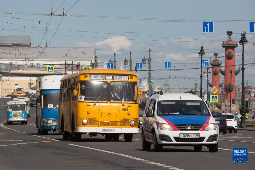 5月20日,各式老爺車(chē)在俄羅斯圣彼得堡街頭巡游。