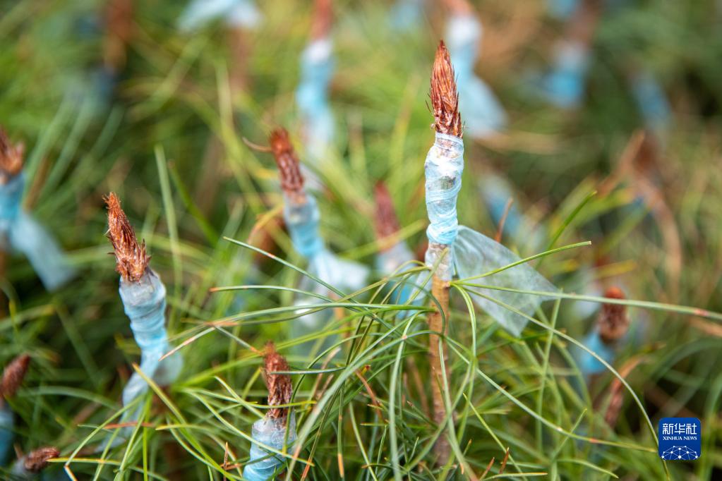 這是5月20日拍攝的伊春森工集團紅松種苗繁育基地輕基質(zhì)容器內的紅松嫁接苗。