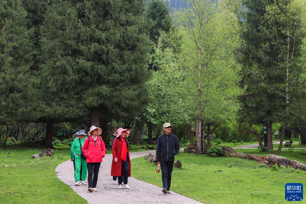 5月20日,游客在位于新疆新源縣的那拉提旅游風(fēng)景區觀(guān)光。