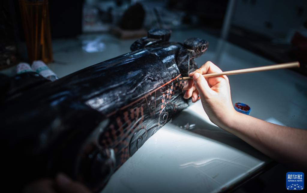 5月20日,在荊州文物保護中心,修復人員李寧修復一件戰國獸形酒具盒。