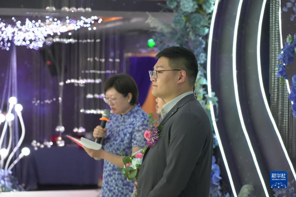 5月21日,趙強(右)和妻子在沈陽(yáng)舉行婚禮。