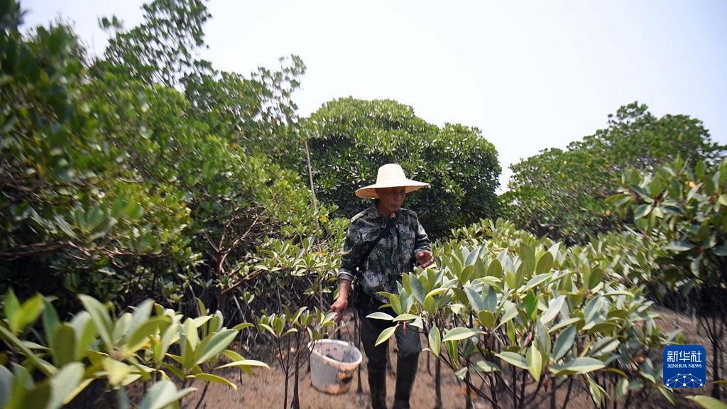 莫積瑞老人巡查紅樹(shù)林(5月20日攝)。