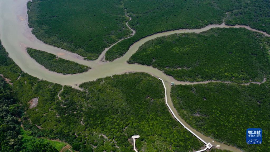 這是廣西山口紅樹(shù)林保護區一角(5月20日攝,無(wú)人機照片)。