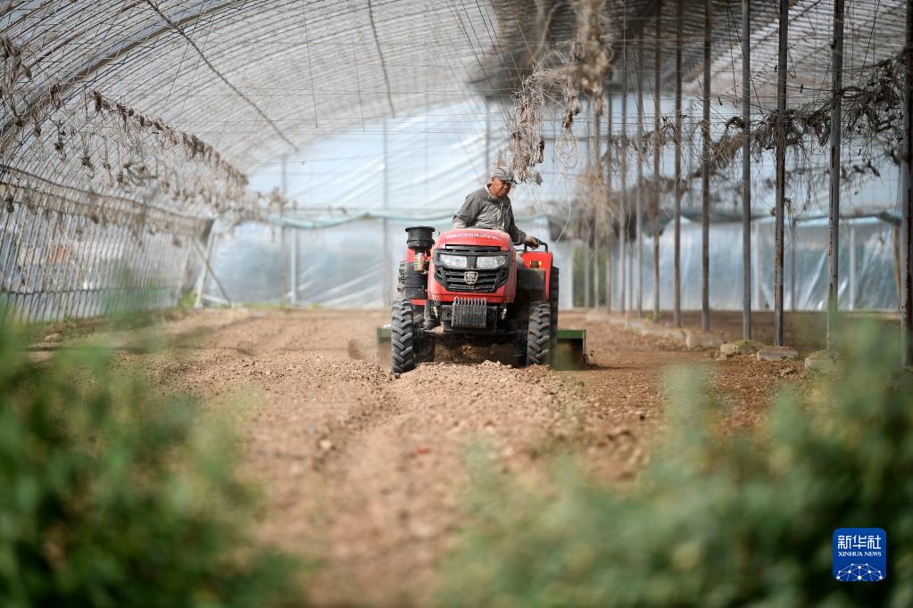 農戶(hù)在寧夏青銅峽市大壩鎮利民村蔬菜基地勞作(5月20日攝)。