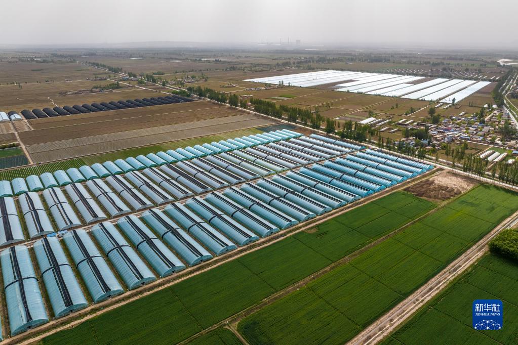 寧夏青銅峽市大壩鎮利民村蔬菜基地(5月20日攝,無(wú)人機照片)。