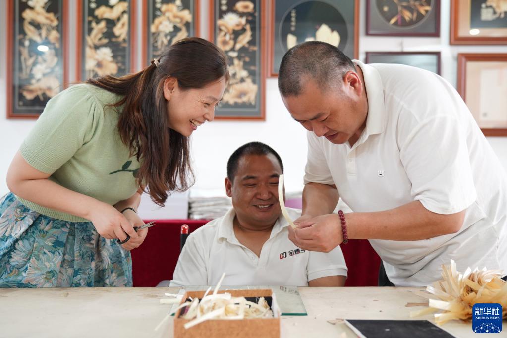 夫妻倆推行殘疾人就業(yè)項目,每年拿出收入的20%作為傳承經(jīng)費,包吃包住免費向殘疾人傳授蘆葦畫(huà)手工技藝。據介紹,公司至今累計培訓學(xué)員9000多人次,已發(fā)展成“國家級殘疾人非遺傳習基地”“國家級殘疾人文化創(chuàng )意產(chǎn)業(yè)基地”。