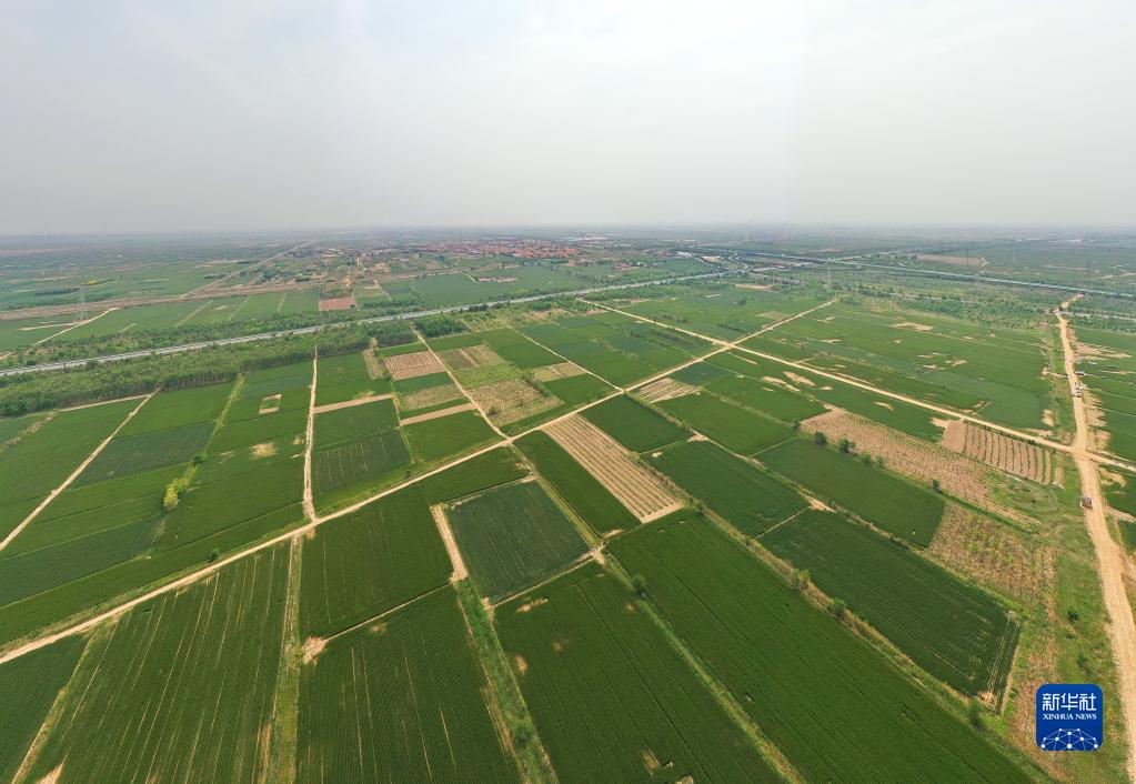 滄州渤海新區黃驊市舊城鎮仙莊片區旱堿地麥田(5月11日攝,無(wú)人機照片)。