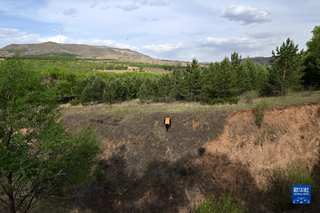 護林員馬裕在林場(chǎng)巡查(5月17日攝)。