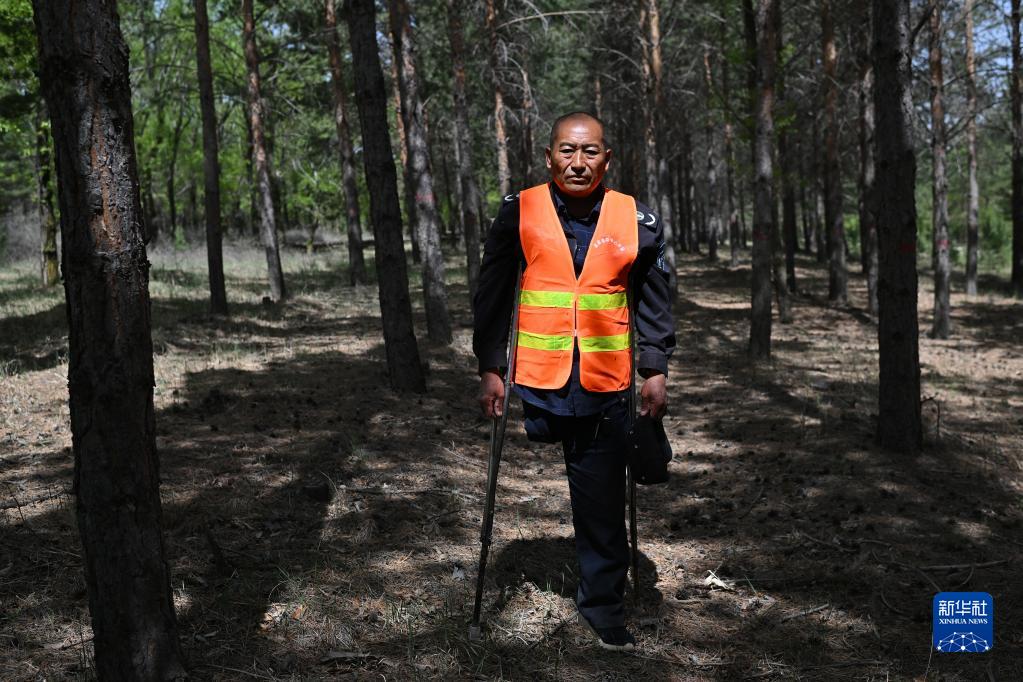護林員馬裕在松樹(shù)林里,這里很多樹(shù)都是馬裕剛參加工作時(shí)種下的,如今已枝繁葉茂(5月17日攝)。