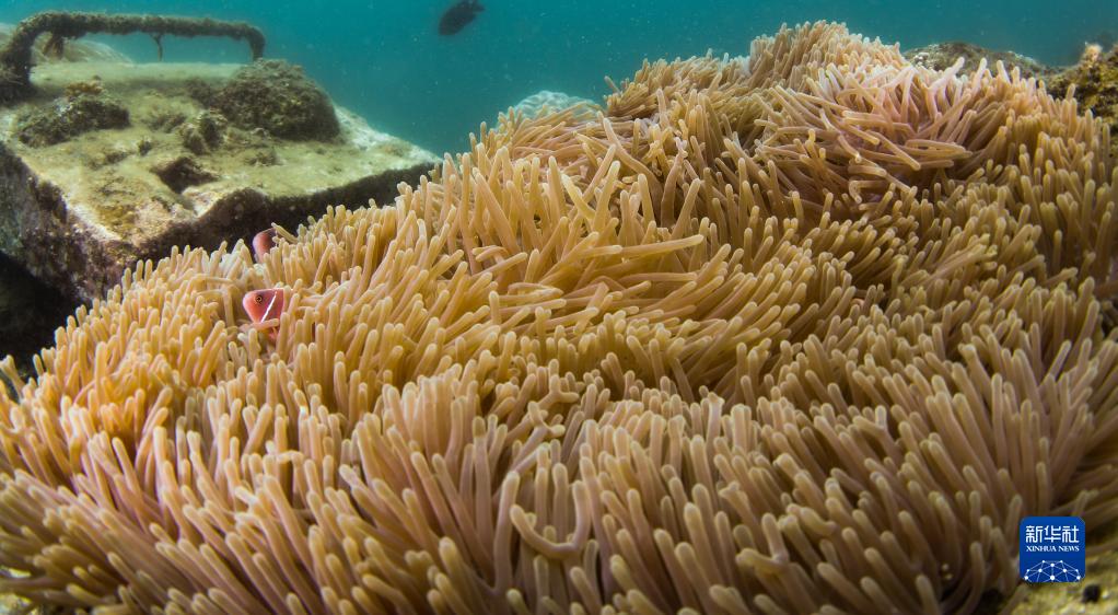 這是在蜈支洲島海域海洋牧場(chǎng)拍攝的小丑魚(yú)和???月18日攝)。