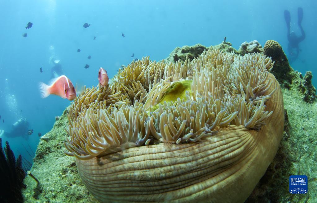 這是在蜈支洲島海域海洋牧場(chǎng)拍攝的小丑魚(yú)和???021年5月22日攝)。