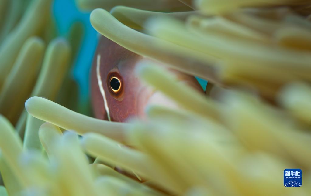 這是在蜈支洲島海域海洋牧場(chǎng)拍攝的藏在??械男〕篝~(yú)(2021年5月23日攝)。