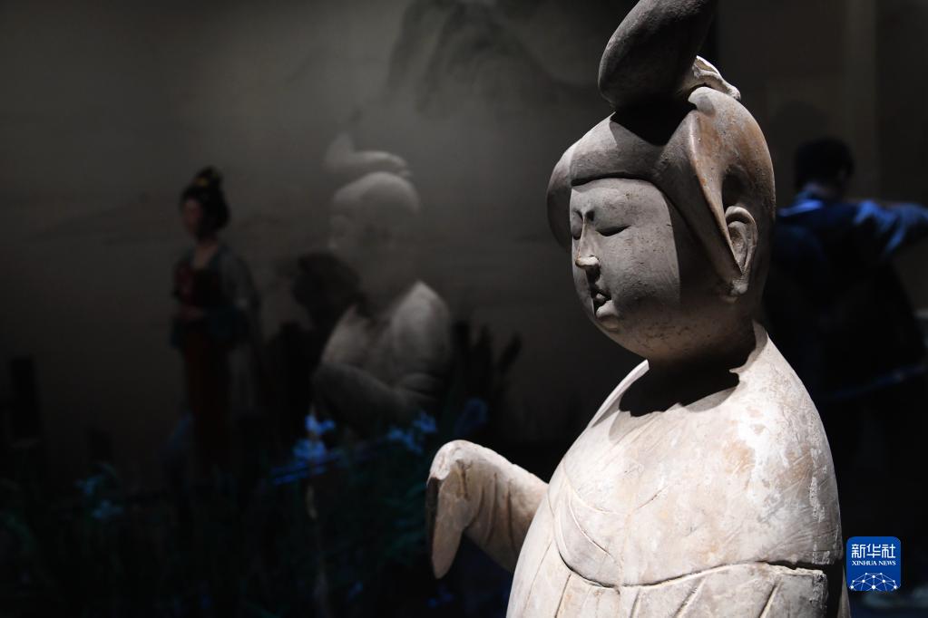 這是在西安博物院《長(cháng)安有故里——絲路少年大唐行》展覽上展出的女立俑(5月22日攝)。
