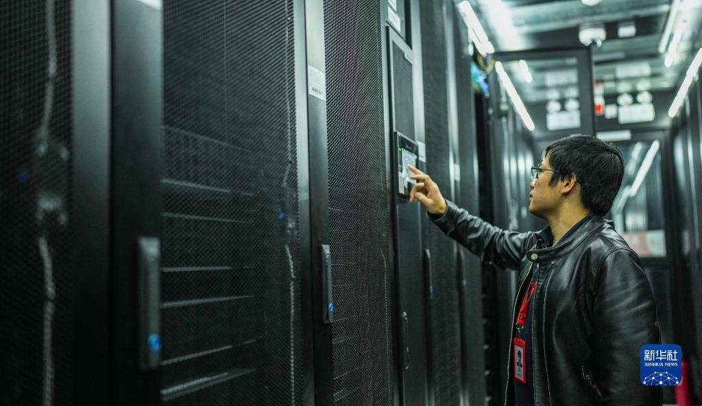 工作人員在中國聯(lián)通貴安數據中心微模塊機房進(jìn)行巡檢(5月23日攝)。