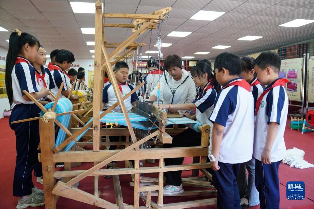 當日,河北省沙河市組織當地小學(xué)生來(lái)到位于塔子峪村的非遺傳習所,了解沙河四匹繒布制作技藝,感受傳統文化的魅力。