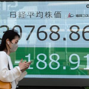 5月24日,行人走過(guò)日本東京街頭的證券實(shí)況看板。