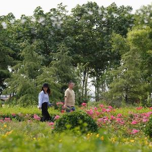 5月24日,市民在河北省沙河市老子文化園休閑散步。
