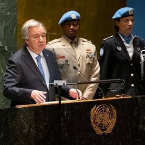 5月25日,在位于紐約的聯(lián)合國總部,聯(lián)合國秘書(shū)長(cháng)古特雷斯在活動(dòng)上致辭。