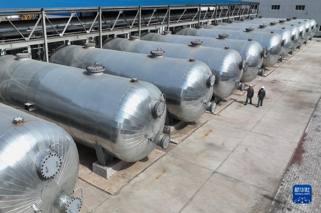 5月25日,工人在唐山市海港經(jīng)濟開(kāi)發(fā)區海水淡化項目投產(chǎn)的淡水生產(chǎn)區走過(guò)(無(wú)人機照片)。
