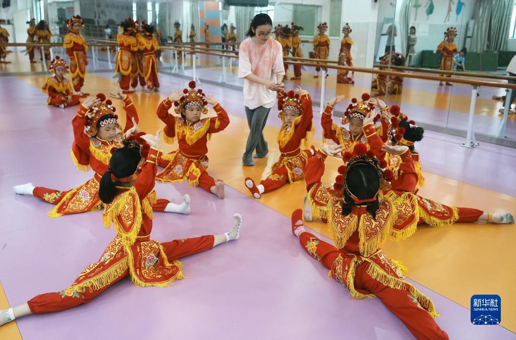 在江西省宜黃縣水北新區小學(xué),學(xué)生在老師指導下練習宜黃戲基本功(5月25日攝)。